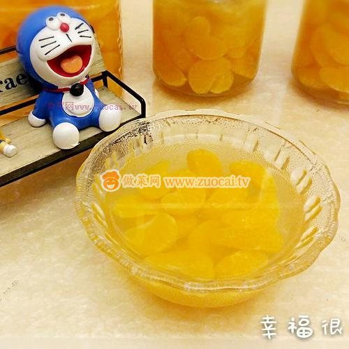 7.冷卻后的橘子糖水灌入準(zhǔn)備好的玻璃的或者瓷制的密封罐中。