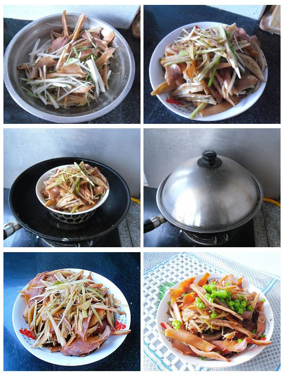5、蔥姜切絲。6、把蔥姜絲放入盆中。