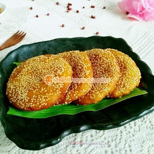 10.餅子放芝麻盤里,兩面沾滿芝麻。然后按實(shí)芝麻,防止炸時(shí)掉芝麻。