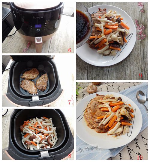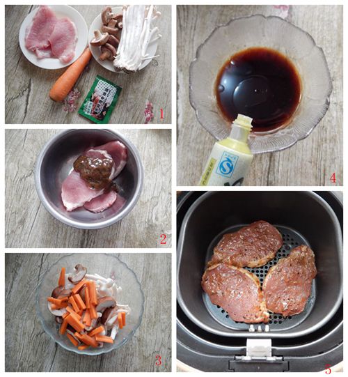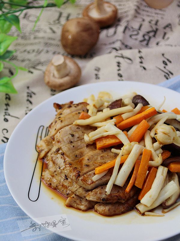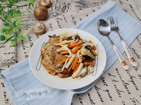 食材:豬排200克、海鮮菇150克、香菇50克、胡蘿卜50克
