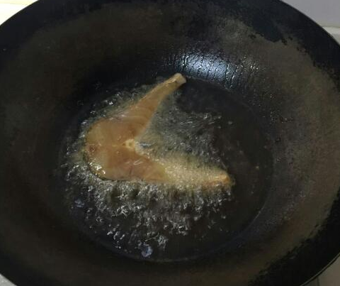 5.到入適量的油,待油溫身高后把腌制好已經(jīng)入味的魚放油鍋里煎。