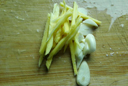 2、姜切絲,蒜切片