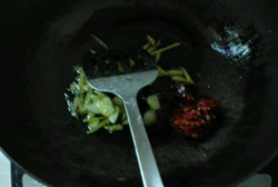 12.再放入干辣椒段炒香。