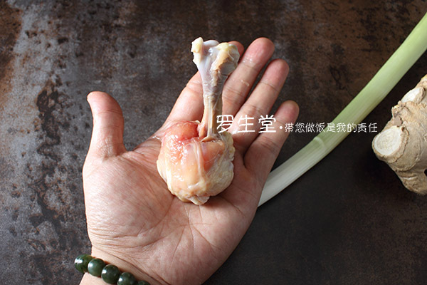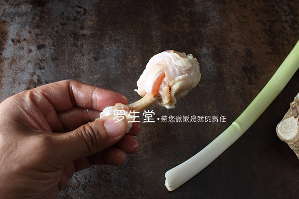如果不好翻就稍微拉兩刀,翻過來后攥成一個肉團(tuán),上邊連著一根骨頭,這就是雞肉錘