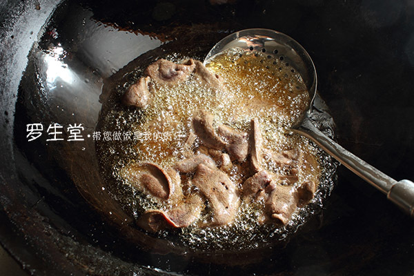 給豬肝滑油的時(shí)候再腌制豬肝,不要早早就給豬肝腌上,那樣放一會兒血水還會流出來,白腌,現(xiàn)滑現(xiàn)腌。