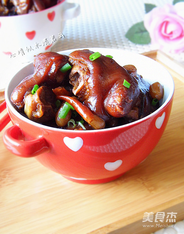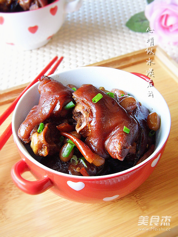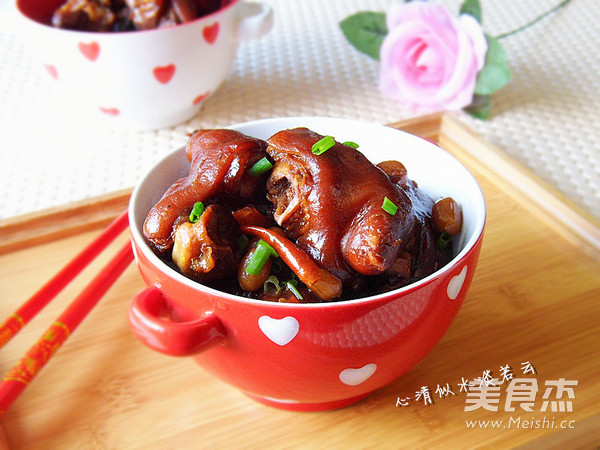 2、豬蹄建議選用豬前蹄,豬前蹄肉多骨小,最好是沒有抽去筋的豬蹄。洗凈豬蹄,用開水煮到皮發(fā)脹,然后取出用指鉗將毛拔除,省力省時;