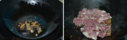 10、加入生抽,待肉炒至8分熟時(shí)盛出放一邊。