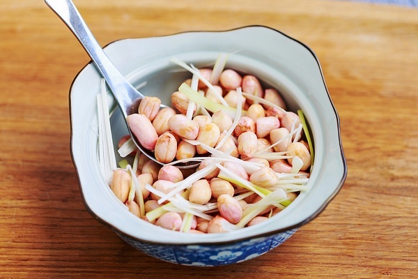 食材:鮮花生300g、白醬油1茶匙、蔥白1大段。