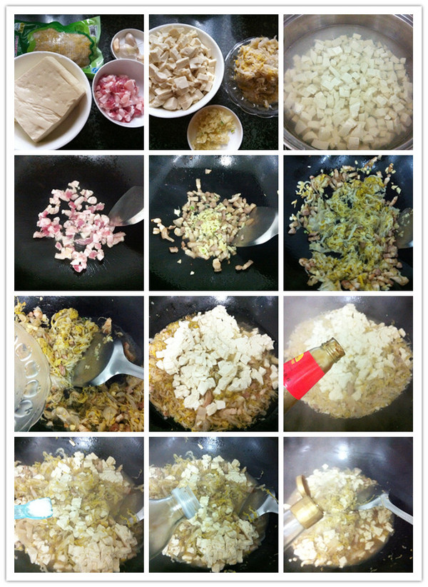 食尚小貼士:豆腐焯煮一下可以去除豆腥味,煮的時候也可以保持完整不易碎,口感更緊實。五花肉要煸炒出香味,至焦黃色才下其他食材同炒。煮至最后,要保留一些湯汁更好吃,撈飯一流。這口感中辣,我家人還能接受,假若更能吃辣的朋友可以放入少量豆瓣醬一起爆炒。