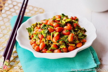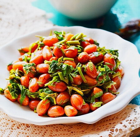 香椿那散發(fā)著特殊的香氣也許大多數(shù)人并不喜歡,但對(duì)于喜歡的人來說,香椿卻是最愛,香椿拌五香花生米,嫩嫩的香椿芽拌上用香料煮過的又香又脆的花生米,立刻變成一道下酒菜吶。