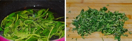 5:撈出控干水分,香椿另起鍋焯熟,過涼水,同樣控干水分。