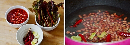 食材:香椿120g,花生100g,干辣椒8個(gè),香葉2個(gè),花椒十幾粒,八角1個(gè),桂皮1個(gè),生姜4片