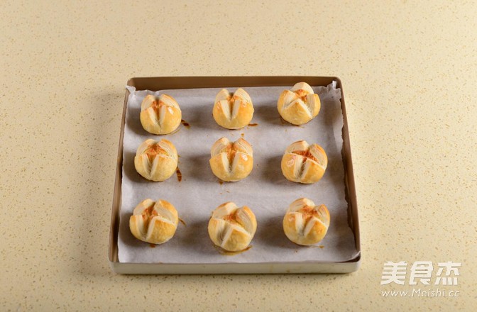 17.烤至表面層次盛開,顏色金黃即可