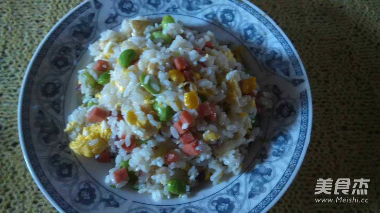 植物油10克 食鹽3克 雞蛋2個(gè) 洋蔥50克 玉米60克 毛豆60克 火腿腸2根