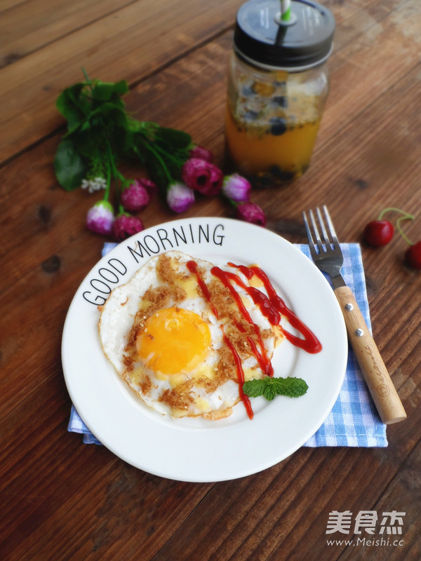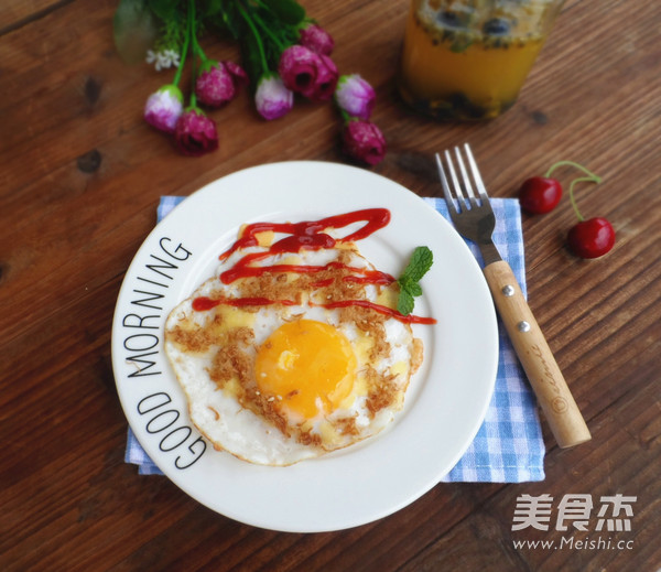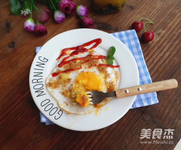 6.程序結(jié)束,把雞蛋放入盤子里,擠上番茄醬。