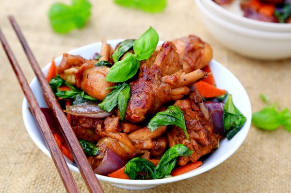 此菜醬香濃郁、香醇厚重,色澤紅潤(rùn)艷亮,雞肉鮮嫩滑潤(rùn),最后的九層塔的加入更有畫龍點(diǎn)睛,出神入化的感覺。九層塔是臺(tái)灣三杯雞不可少的重要元素。