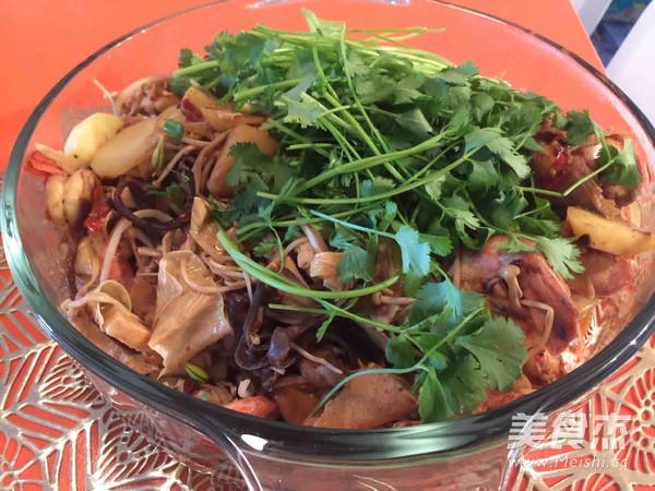 7.出鍋前嘗一下咸淡,依據(jù)個人口味適當增添鹽、雞精、老抽,出鍋前撒上香菜即可。
