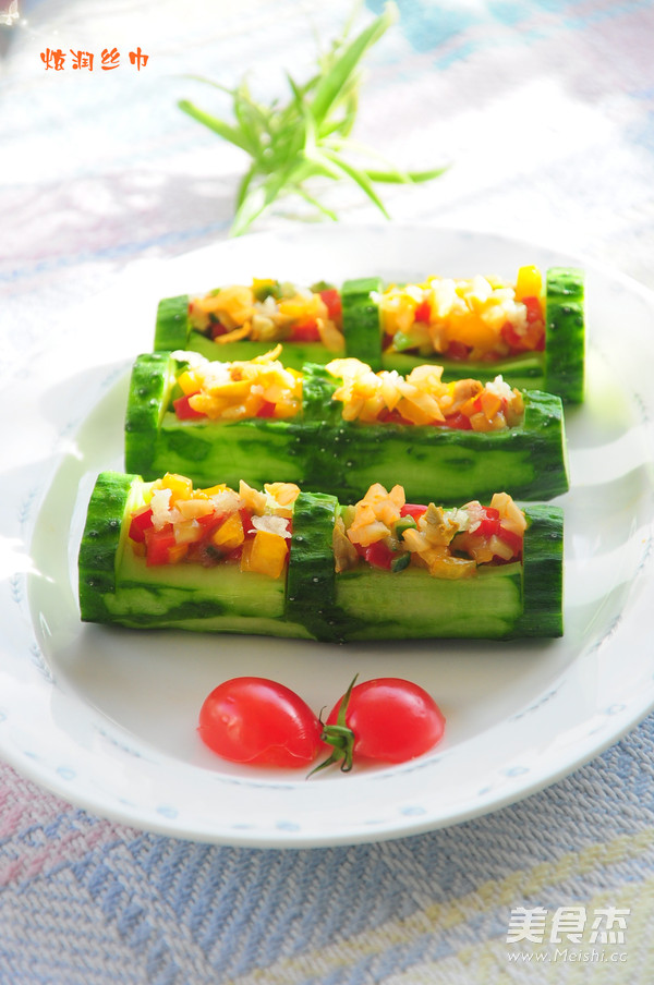 絲巾溫馨提示: 1.翠竹榨菜福滿心,里面的餡料還可以放其它果蔬類,可以根據(jù)自己口味進(jìn)行調(diào)整。 2.黃瓜最好選用粗細(xì)差不多的,這樣做出來比較均勻,好看。