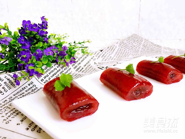 17.把豆沙卷放入蒸籠里,這個時候的顏色多漂亮