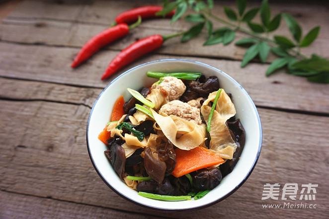 2.黑木耳、豆皮經(jīng)水發(fā)后,再洗干凈