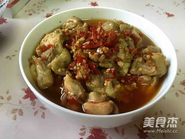 7.焯好的雞肉和剁椒攪拌均勻。腌制至少十分鐘,腌制時間久一點入味。
