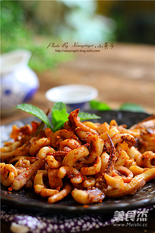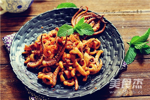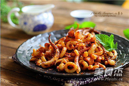 小英子心語: 1. 魷魚不可炒的時(shí)間太久,太久會老反而口感不好 2. 加調(diào)料要快加好調(diào)教翻炒幾下就可以盛盤了。 3. 魷魚尾巴那有小骨頭洗的時(shí)候要擠出來。