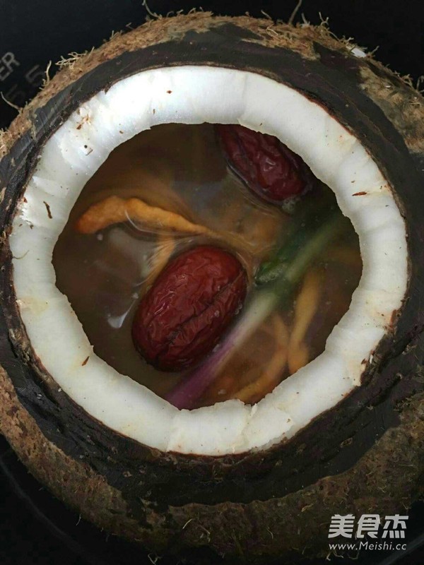 5.所有材料放入椰子內(nèi) 加少量鹽