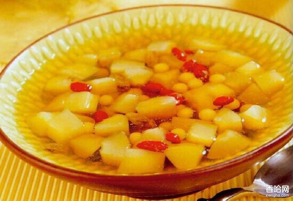 原料:雞蛋14個,煮熟的人參果2錢、鹽3克、酥油1兩、水攪和豆粉2錢。做法:洗好的人參果在水中煮熟。雞蛋的蛋清和蛋黃分開,加上鹽和水攪豆粉后放在蒸籠中蒸熟。蒸熟的蛋清,蛋黃切成塊狀、擺在菜碟中,蛋清、蛋黃塊上插好人參果。菜鍋中再放少許酥油再微火中化成液體后加上少量的水攪豆粉煮至出現(xiàn)沸泡的時候澆在菜碟中的雞塊上,蛋插人參果這道菜做成了。