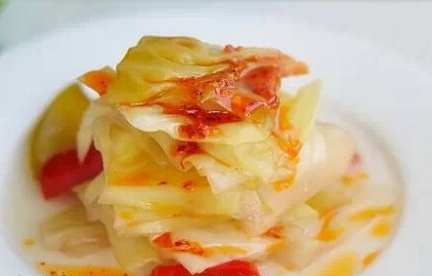 11)腌漬好的泡菜,澆上一點(diǎn)辣椒油吃起來味道酸辣開胃。