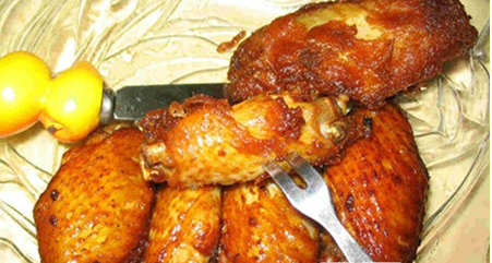 3、用燒烤檔,烤23-24分鐘即可,中間每隔5-6分鐘將雞翅拿出涂上蜂蜜,將花椒、八角與鹽一同干炒片刻,將鹽拿出來(lái),擦在雞腿或雞翅上,過(guò)雞腿5小時(shí),雞翅3小時(shí), 放入預(yù)熱到350度的爐子里,烤3個(gè)小時(shí),不時(shí)想起來(lái),就去聞一聞,翻一翻,最后用broil將皮烤脆(只能烤幾分鐘,否則必糊,前功盡棄,切切!)。其好吃無(wú)比!