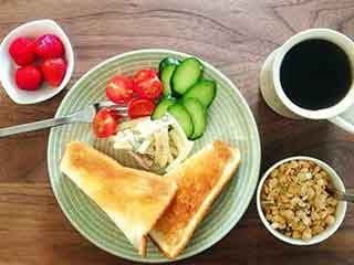 早餐起床半小時(shí)后吃早餐比較合適,成年人的早餐能量應(yīng)為700卡路里左右,谷類(lèi)為100克左右,可以選擇饅頭、面包、麥片、面條、粥等;適量含有優(yōu)質(zhì)蛋白質(zhì)的食物,比如牛奶、雞蛋或大豆制品,再有100克的新鮮蔬菜和100克的水果。
