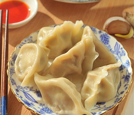 13.鍋中水煮開下入餃子煮熟,隨醋碟一起上桌。