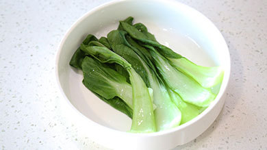 1、水加熱至沸騰以后,加入清洗干凈的油菜,水再次沸騰以后撈出(最多不超過2分鐘)。