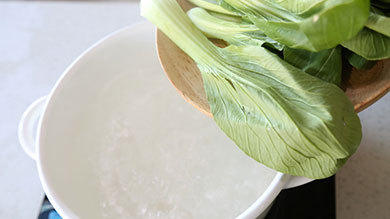 沸水焯。水加熱至沸騰→放入清洗干凈的食材→水再次沸騰后撈出→瀝干備用