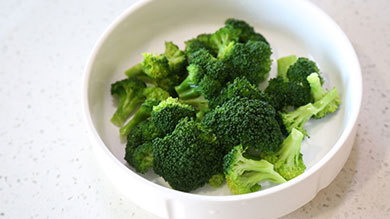 2、焯好的西蘭花撈出以后,過涼水,瀝干備用即可。