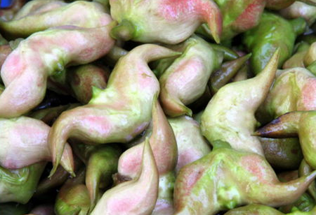 6、鮮菱蒂(菱柄),搽擦患處,一日數(shù)次,治贅疣(青年性扁平疣、多發(fā)性尋常疣)。