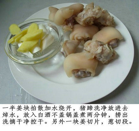 原料:豬蹄二只,筍干一塊,花生二兩。