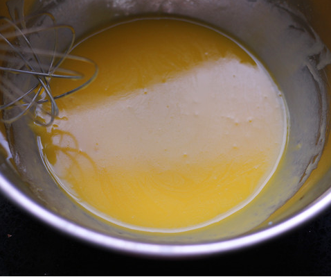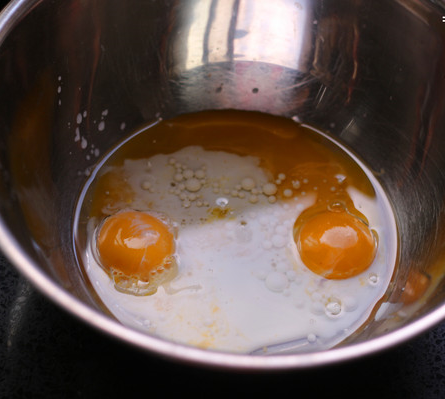 1.蛋清蛋黃分離。蛋黃里加入玉米油和牛奶;