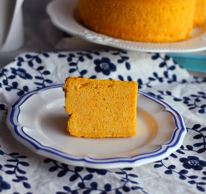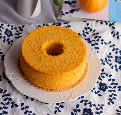 雞蛋4個,去皮熟南瓜140克,低粉90克,糖45克,玉米油60克,牛奶25克,鹽少許,檸檬汁少許。