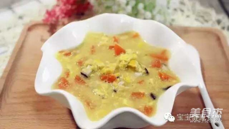 1.食材準(zhǔn)備:玉米1/3個(gè)、胡蘿卜1/4個(gè)、香菇2朵、雞蛋1個(gè)