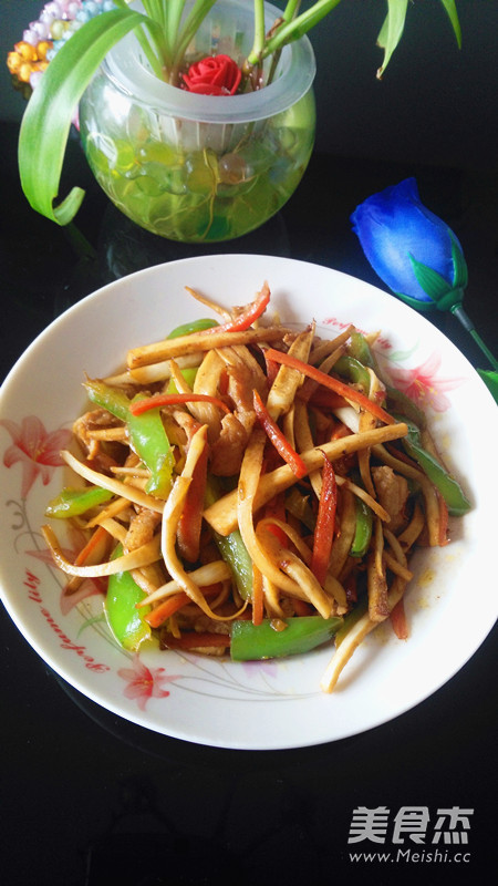 5.鍋燒熱,放油,加入肉絲翻炒至變色后盛出