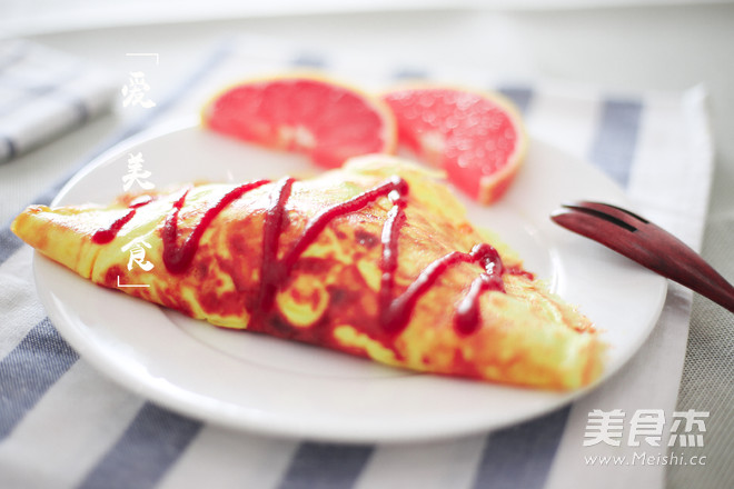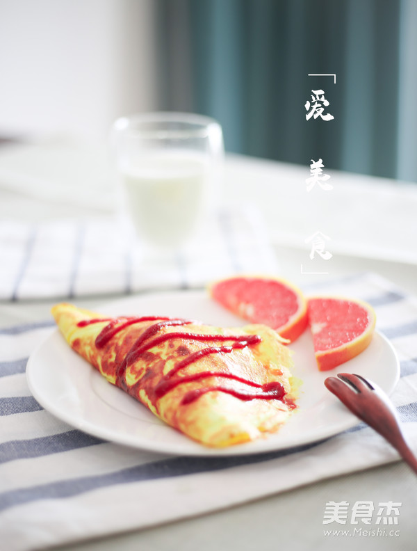 7.將蛋包飯倒扣入盤中,擠上番茄醬裝飾