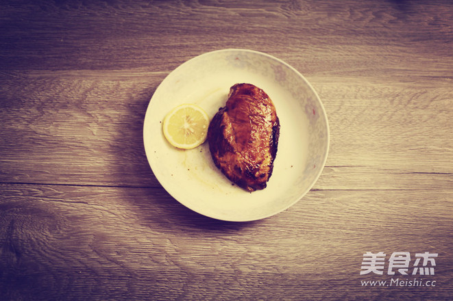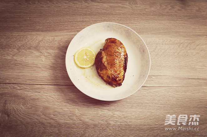 3.雞胸肉用黑胡椒粉,少許鹽和醬油,檸檬汁腌制下,然后用薄膜封好放冰箱10分鐘。小伙伴也可以把雞胸肉切薄,橫到切2片,這次是懶人菜就沒切,也不太影響口感。因為減肥,腌制沒放生粉。