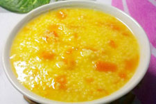 炒白扁豆60克(或鮮扁豆120克),粳米100克,紅糖適量。