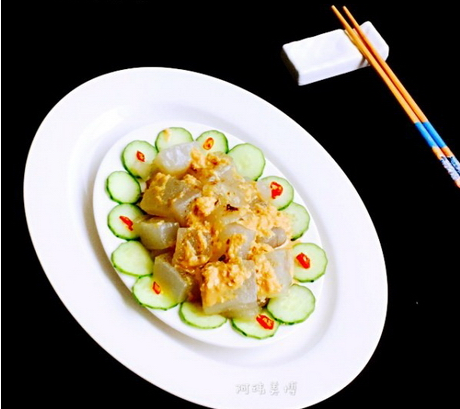 調(diào)料:麻汁醬、精鹽、味極鮮、米醋、香油、大蒜、花生油魚露(魚油、魚汁皆可以)適量。