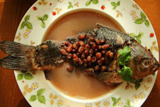 主料:鯽魚1條,赤小豆100克。調(diào)料:食鹽1/2茶匙,姜1小塊,蒜半頭,料酒1/2湯匙,香菜1根,黑胡椒粉1/2茶匙,植物油2湯匙。