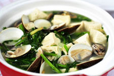 茼蒿文蛤燉豆腐