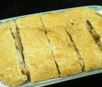 12、將熟驢肉放進(jìn)火燒里,包起來(lái),撒上一層芝麻。