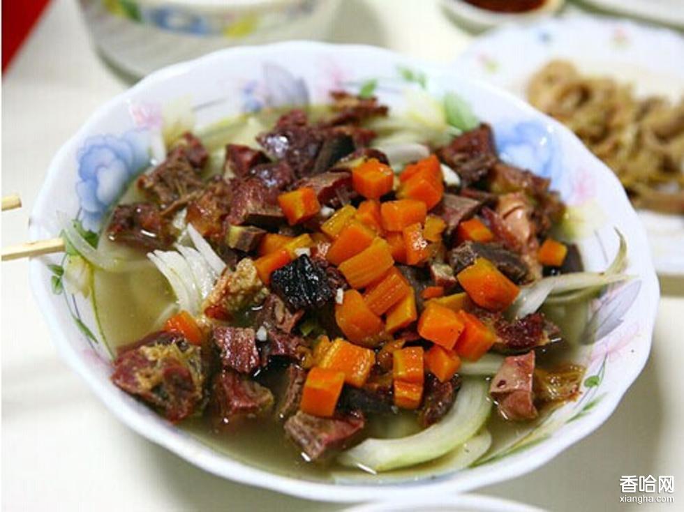 材料:馬腸子;馬肋骨肉;鹽;洋蔥;胡椒;孜然等。