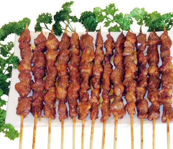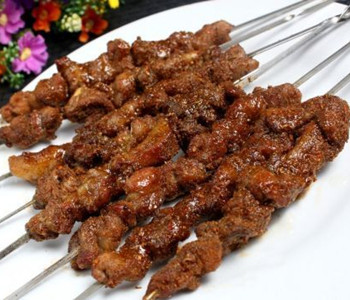做法:先把羊肉切成塊狀,用鹽、蔥、姜、蘑菇精、醬油、料酒、淀粉、香油、孜然、五香粉拌在一起腌泡10分鐘,然后用竹簽穿串待烤即可。